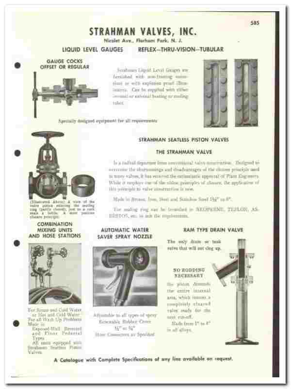Original 1960 industrial trade vintage catalog for STRAHMAN VALVES, INC. Main office and plant were located at Nicolet Avenue, Florham Park, NJ.