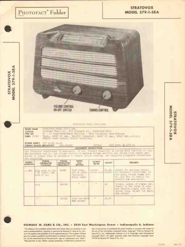 stratovox model 579-1-58a am radio receiver sams photofact manual