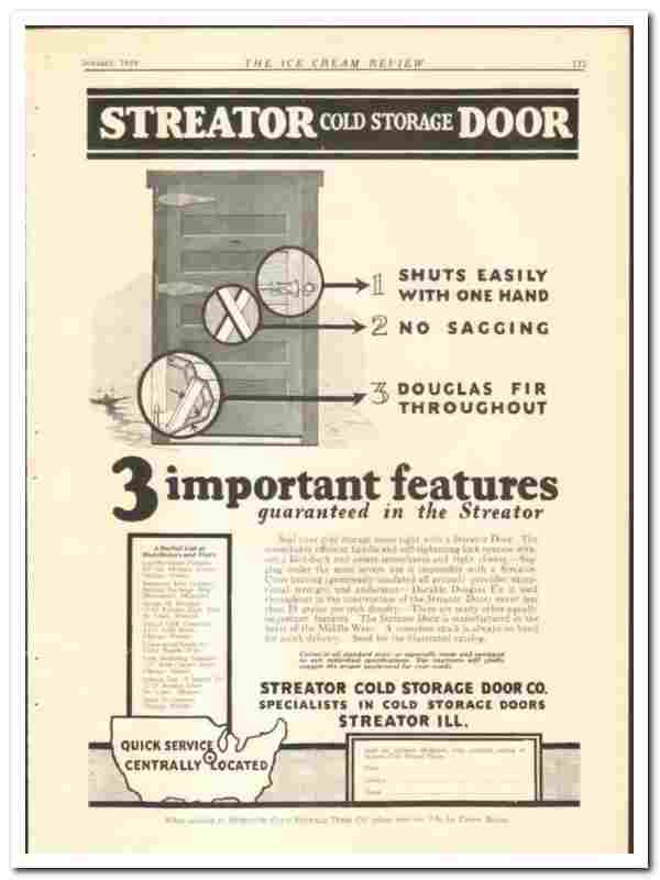 Streator Cold Storage Door Company 1928 vintage ice cream ad