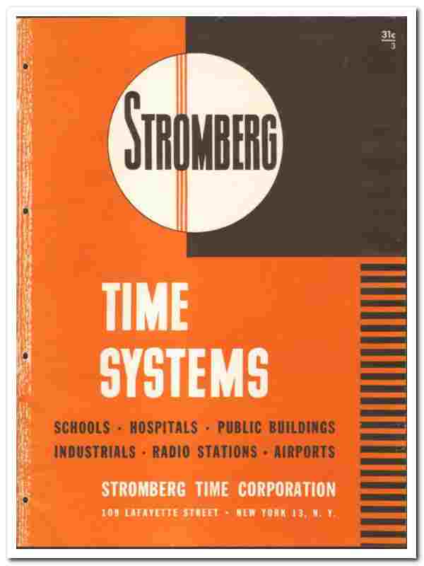 Original 1946 electrical trade vintage catalog for the STROMBERG TIME CORPORATION. (Subsidiary of General Time Instruments Corp). Main office and plant were located at 109 Lafayette Street, New York, NY.