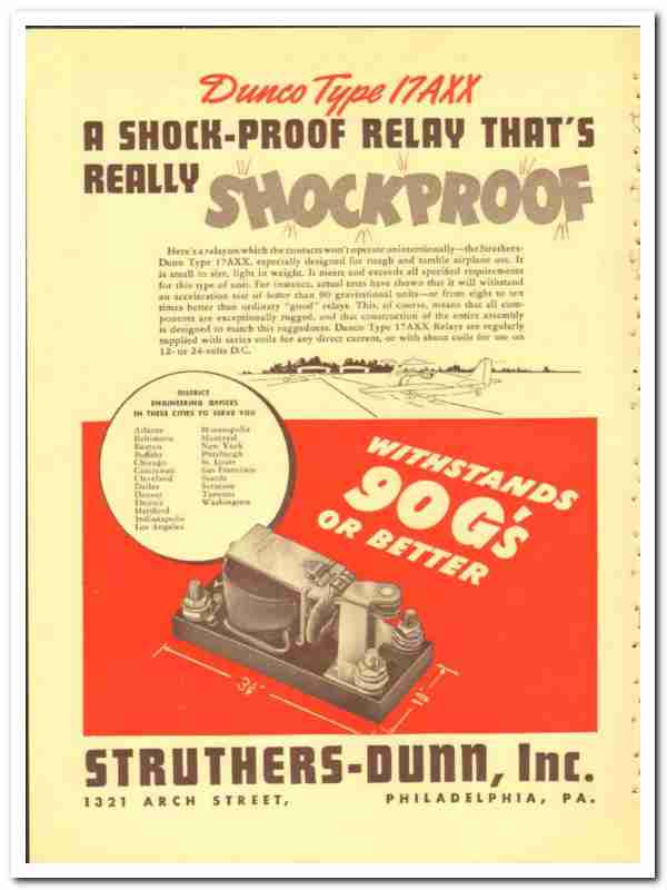 Struthers-Dunn Inc 1943 vintage electrical ad relay shock-proof Dunco