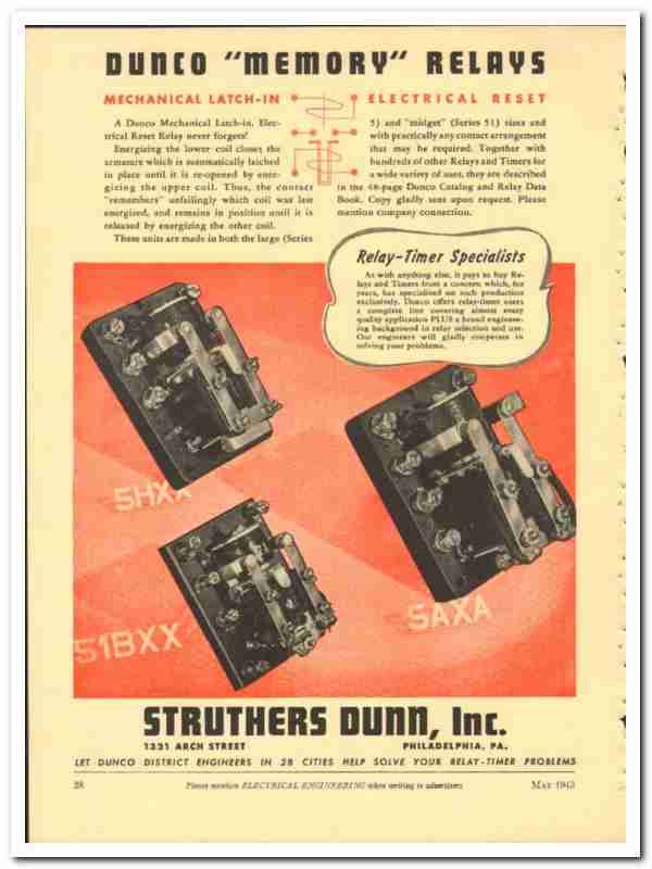 Struthers-Dunn Inc 1943 vintage electrical ad relays memory Dunco