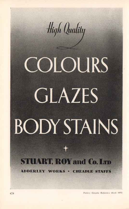 Original pottery vintage ad for STUART ROY AND COMPANY LTD. Colours, Glazes, Body Stains.