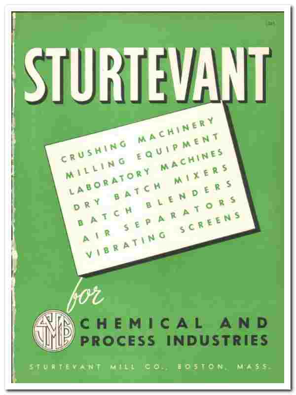 Original 1945 industrial trade vintage catalog for the STURTEVANT MILL COMPANY. Main office and plant were located at 2 Harrison Square, Boston, MA.