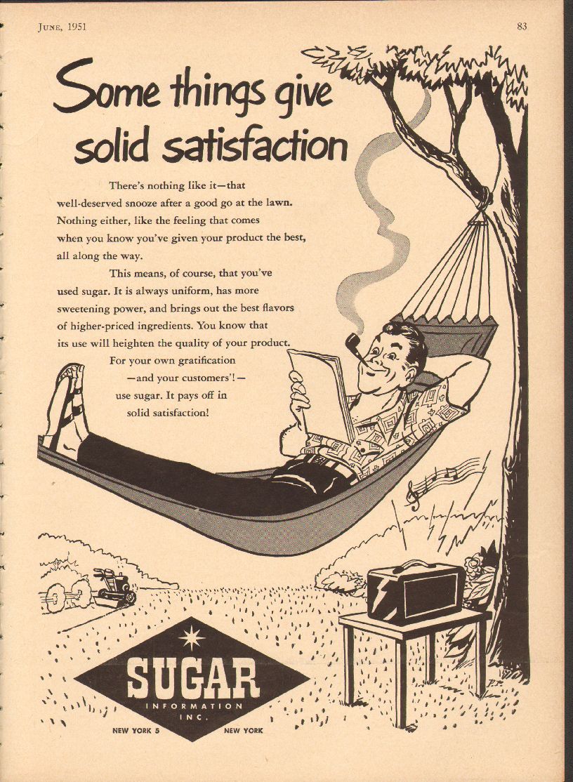 Sugar Information Inc 1951 Vintage Ad Snooze Hammock Satisfaction