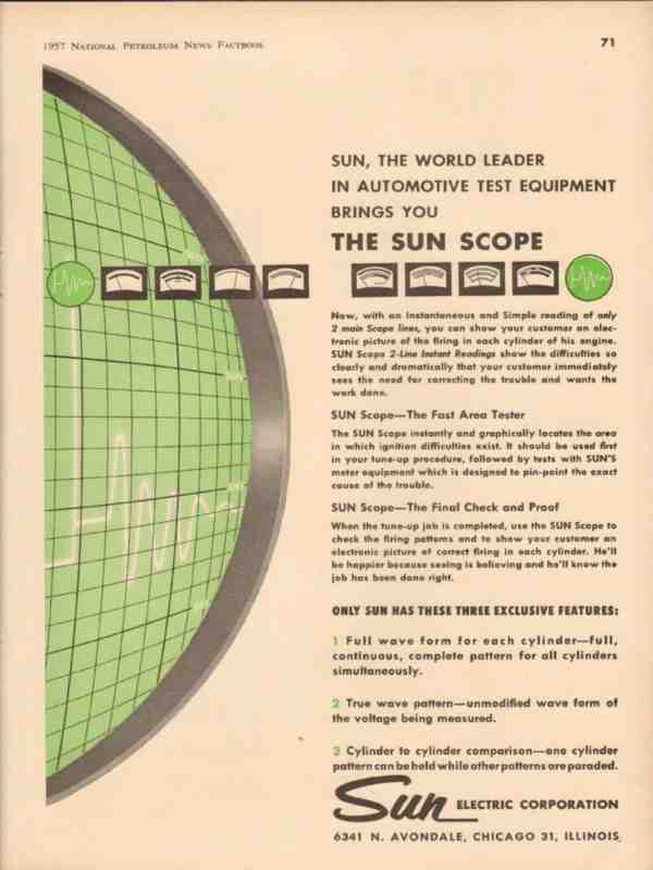sun electric corp 1957 scope automotive test equipment vintage ad