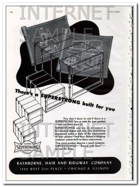 On the reverse side (see Additional Images tab) is RATHBORNE, HAIR AND RIDGEWAY COMPANY of Chicago, IL. Superstrong box or crate for your products. Old box industry advertisement.