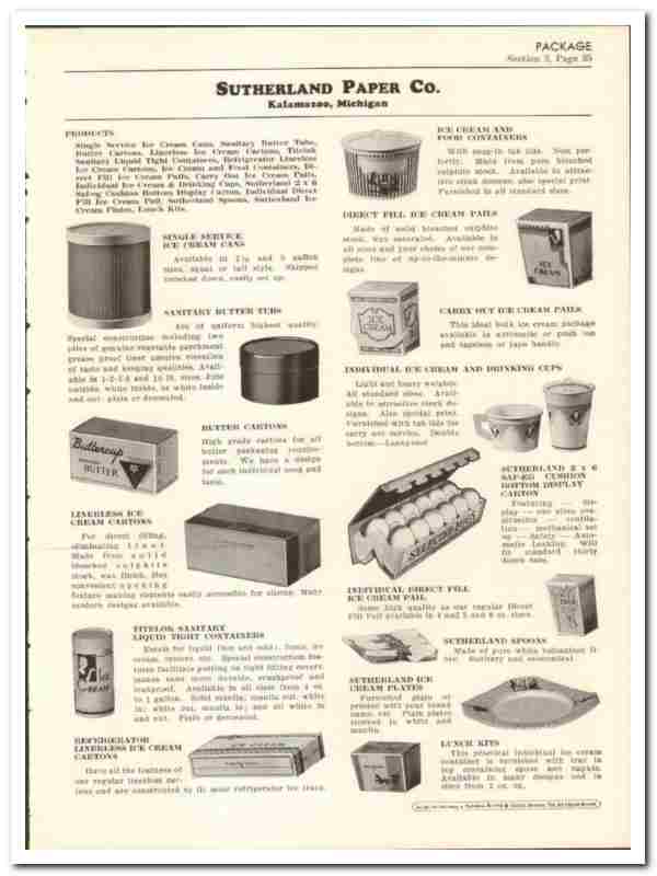 Sutherland Paper Company 1936 vintage dairy catalog ice cream package