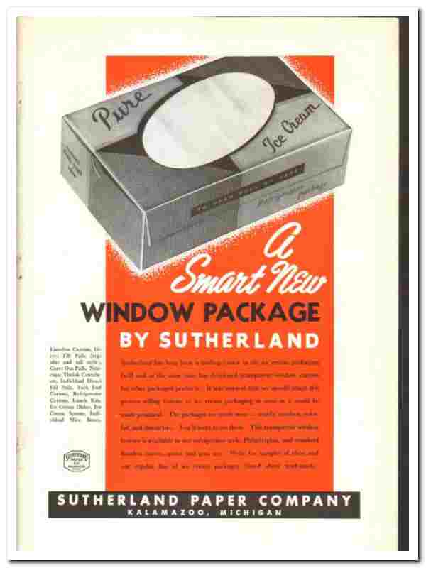 Sutherland Paper Company 1938 vintage box ad ice cream package ready