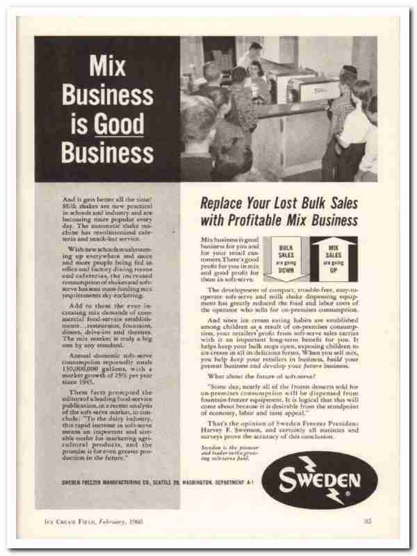 Sweden Freezer Mfg Company 1960 Vintage Ad Ice Cream Soft-Serv Mix
