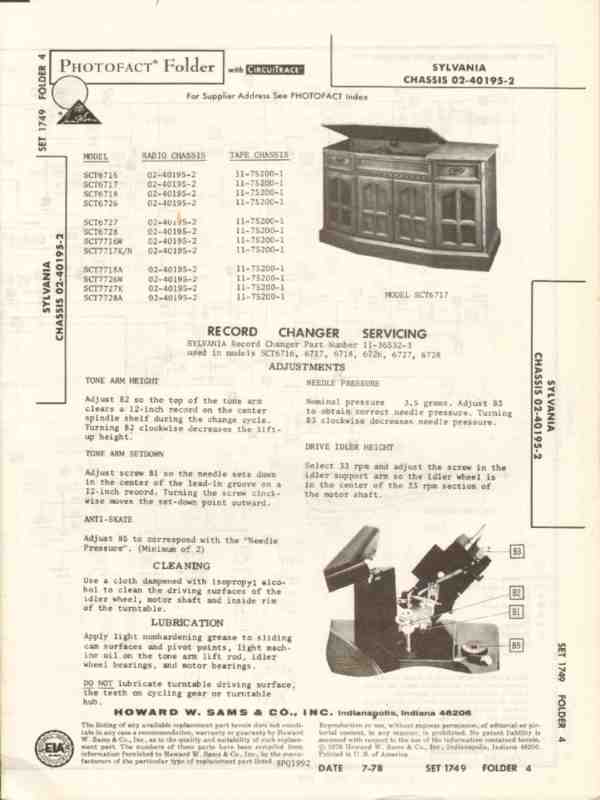sylvania chassis 02-40295-2 am fm phono console sams photofact manual