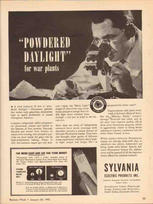 sylvania electric products inc 1943 powered daylight ww2 vintage ad