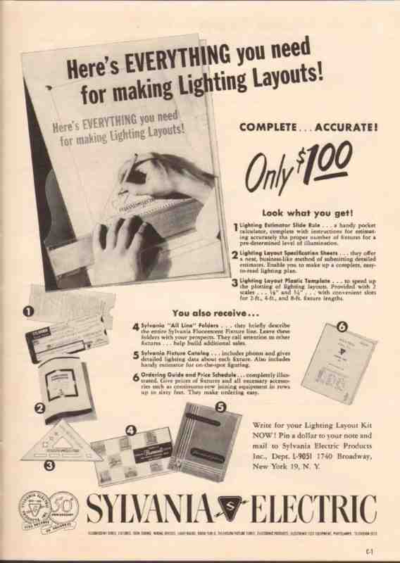 Sylvania Electric Products Inc 1946 vintage catalog lighting fixtures