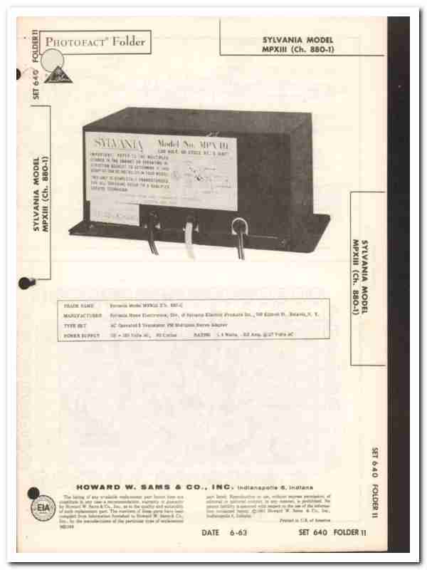 sylvania model mpxiii fm multiplex stereo adptr sams photofact manual