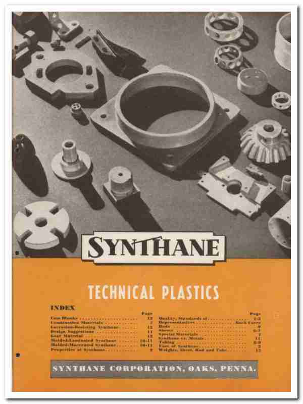 Original plastic trade vintage catalog for SYNTHANE CORPORATION. Main office and plant was located in Oaks, Pennsylvania.