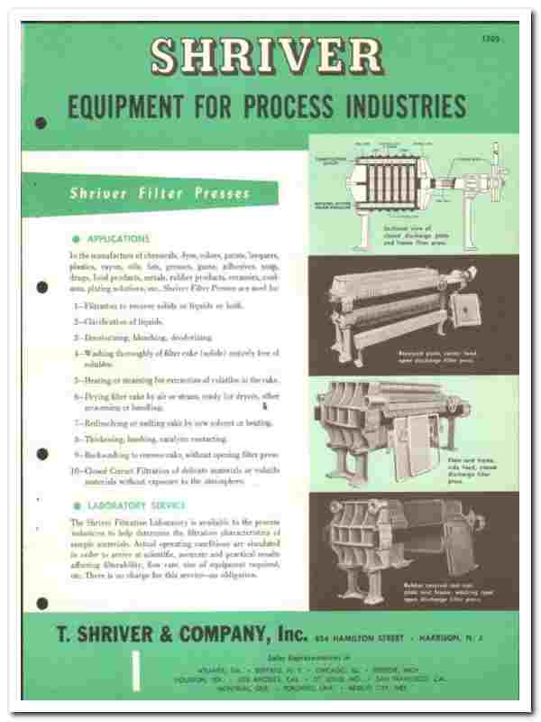 T Shriver Company 1960 vintage industrial catalog filter press process