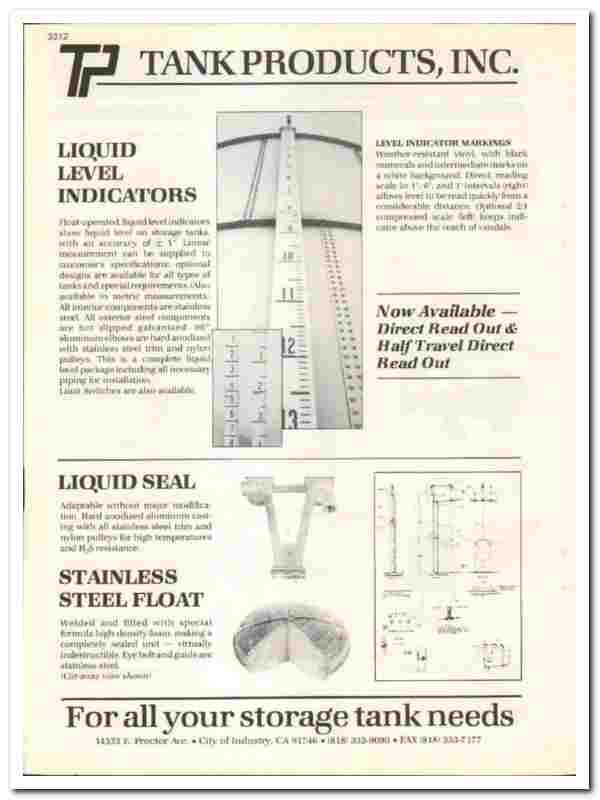 Original 1990 Oil and Gas trade vintage catalog for TANK PRODUCTS, INC. Main office and factory were located at 14333 East Proctor Avenue, City of Industry, CA.