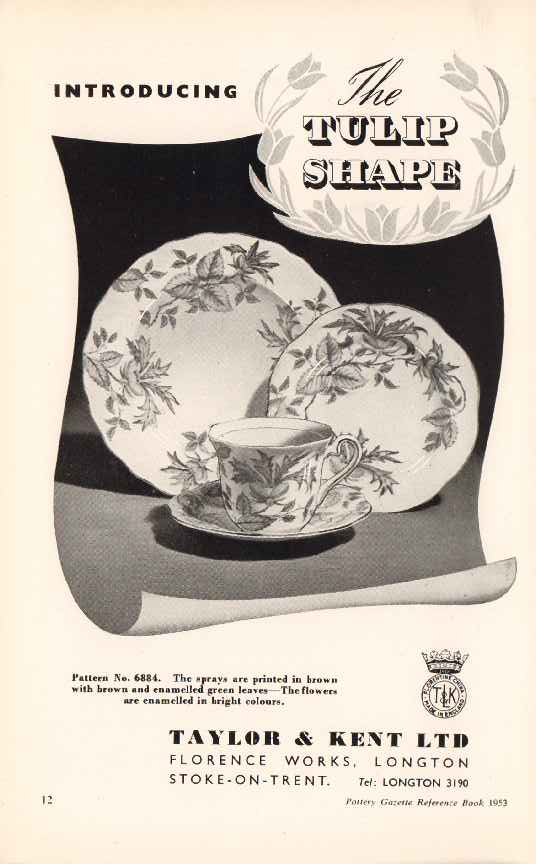 taylor kent ltd 1953 tulip shape pattern 6884 pottery vintage ad