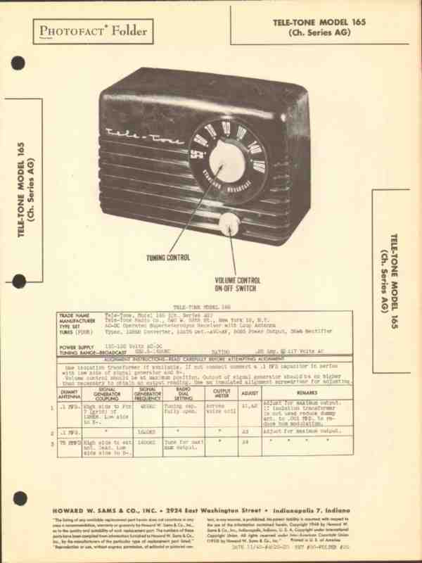 tele-tone model 165 4 tube am radio receiver sams photofact manual