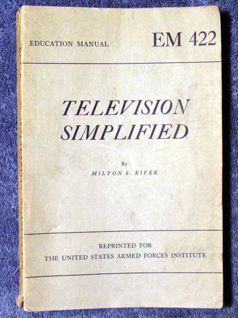 Soft covered book titled TELEVISION SIMPLIFIED Education Manual EM 422 by Milton Kiver, Reprinted for The United States Armed Forces Institute, 1948, 453 pages.