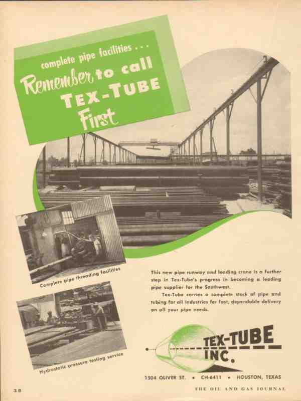 Tex-Tube Inc 1953 Vintage Ad Oil Field Pipe Tubing Dependable Source