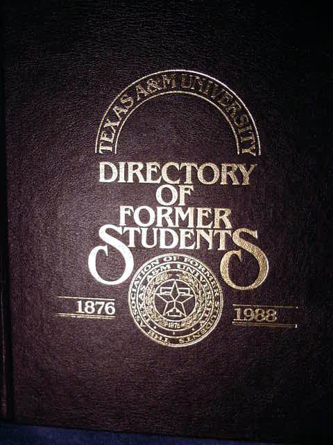 texas a and m directory of former aggie students 1988 book