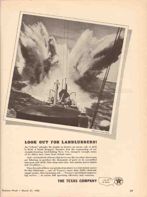 texas company 1943 texaco look out for landlubbers ww2 vintage ad