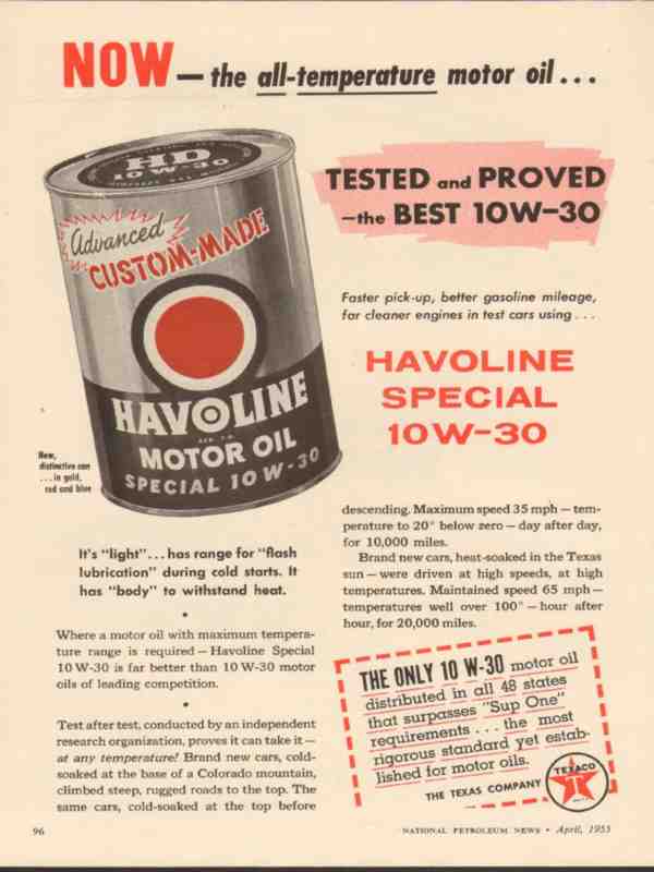 Texas Company 1955 Vintage Ad Havoline Motor Oil All-Temperature