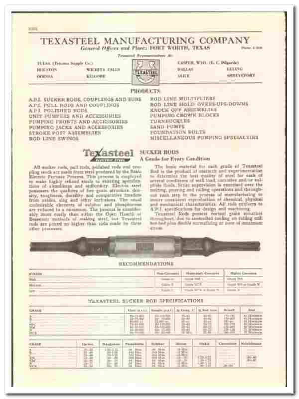 Texasteel Mfg Company 1950 vintage oil gas catalog oilfield sucker rod