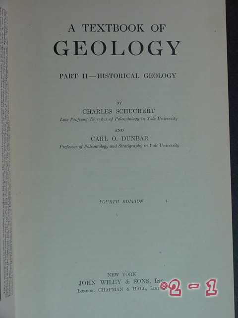 Hard covered book titled TEXTBOOK OF GEOLOGY by Charles Schuchert and Carl O. Dunbar, Fourth Edition, 1947, Cloth Bound, 544 pages, 343 figures, 17 plates. Part II Historical Geology