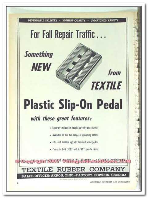 textile rubber company 1963 plastic slip-on bicycle pedal vintage ad