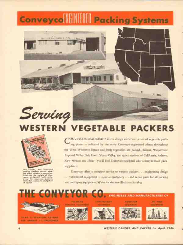 Conveyor Company 1946 serving western vegetable packers vintage ad