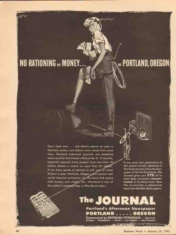 the journal 1943 no rationing money portland or newspaper vintage ad