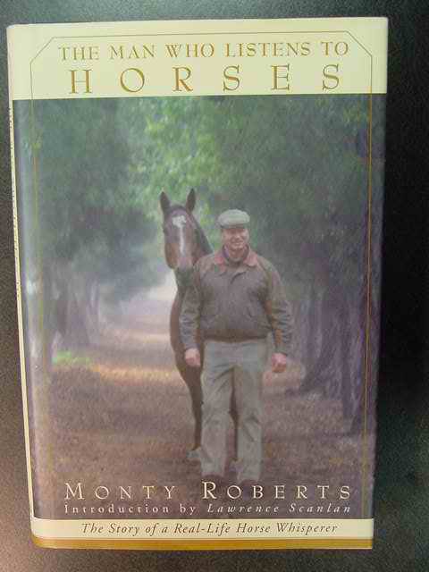 Hard covered book titled THE MAN WHO LISTENS TO HORSES, THE STORY OF A REAL-LIFE HORSE WHISPERER by Monty Roberts, Introduction by Lawrence Scanlan, 1997, 258 pages. Monty Roberts is an American original whose gentle training methods reveal the depth of communication possible between man and animal. He can take a wild, high strung horse who has never before been handled and persuade that horse to accept a bridle, saddle, and rider in thirty minutes. His powers may seem like magic, but his amazing "horse sense" is based on a lifetime of experience. This inspirational and gentle man, first introduced to the American public on Dateline NBC, is part James Herriot, part Bill Gates, and part John Wayne. And his story is one you will never forget. This remarkable book is in VG+ condition, pages clean and intact, and the binding is tight. Don't miss having this book in your library!