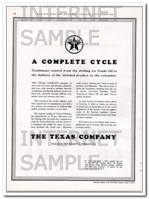 Texas Company 1934 Vintage Ad Texaco Petroleum Products Complete Cycle