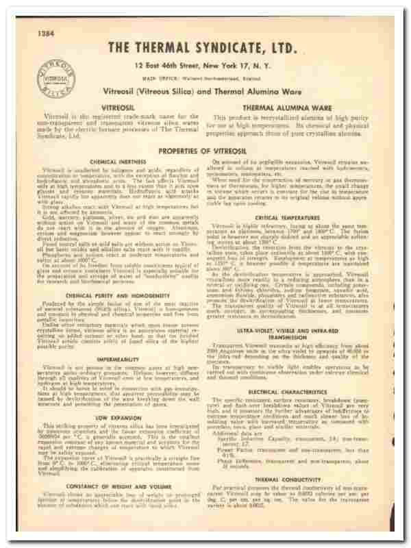 Thermal Syndicate LTD 1948 vintage industrial catalog Vitreosil