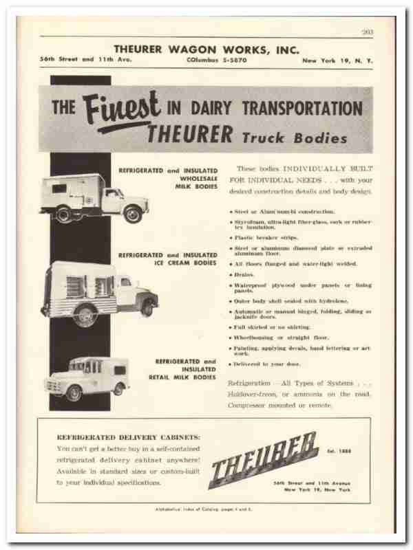 Theurer Wagon Works Inc 1956 vintage dairy catalog truck bodies