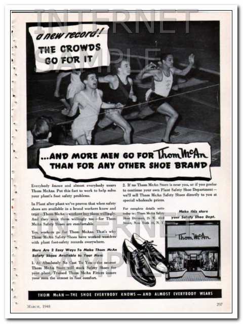 thom mcan 1948 new record crowds go for it safety shoes vintage ad