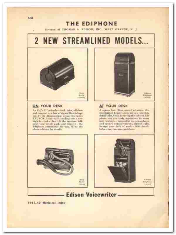 Thomas A Edison Inc 1941 vintage municipal catalog Ediphone dictation
