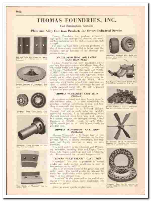 Original 1942 industrial trade vintage catalog for THOMAS FOUNDRIES, INC. Main office and plant were located in East Birmingham, AL.