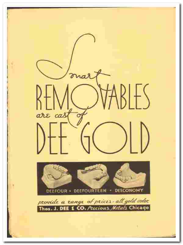 Thomas J Dee Company 1938 vintage dental ad gold removables precious