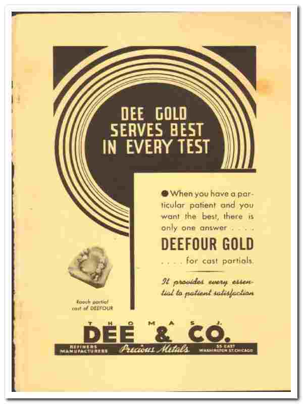 Thomas J Dee Company 1938 vintage dental ad gold cast partial