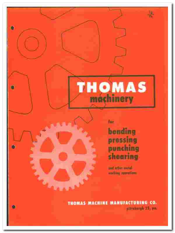 Original 1957 industrial trade vintage catalog for the THOMAS MACHINE MANUFACTURING COMPANY. Main office and plant were located in Pittsburgh, PA.