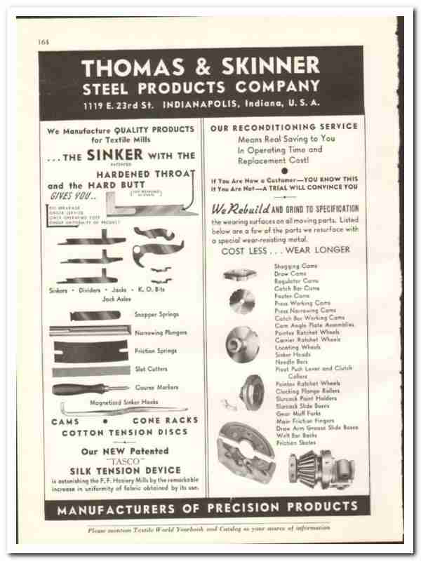 Thomas Skinner Steel Products Company 1938 vintage textile ad sinker