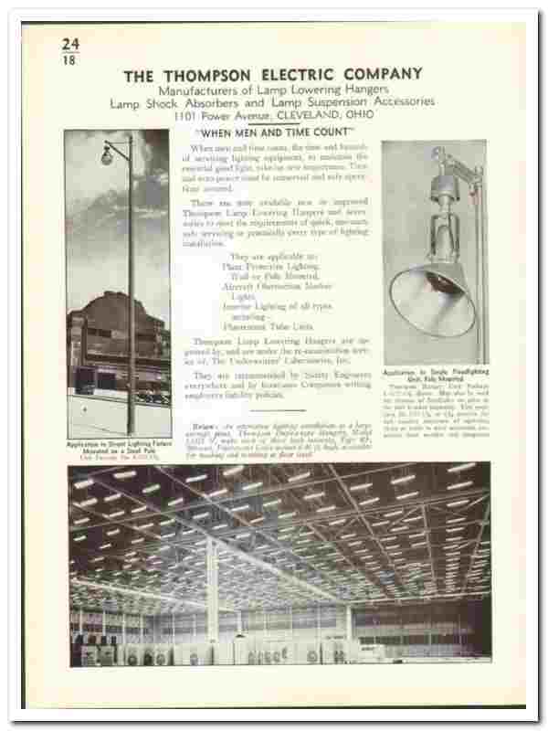 Original 1942 electrical trade vintage catalog for the THOMPSON ELECTRIC COMPANY. Main office and plant were located at 1101 Power Avenue, Cleveland, OH.