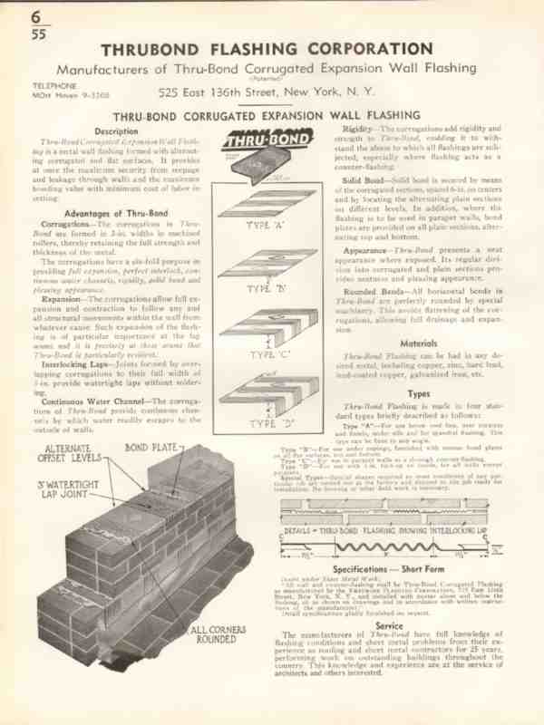Thrubond Flashing Corp 1938 Vintage Catalog Corrugated Expansion Wall