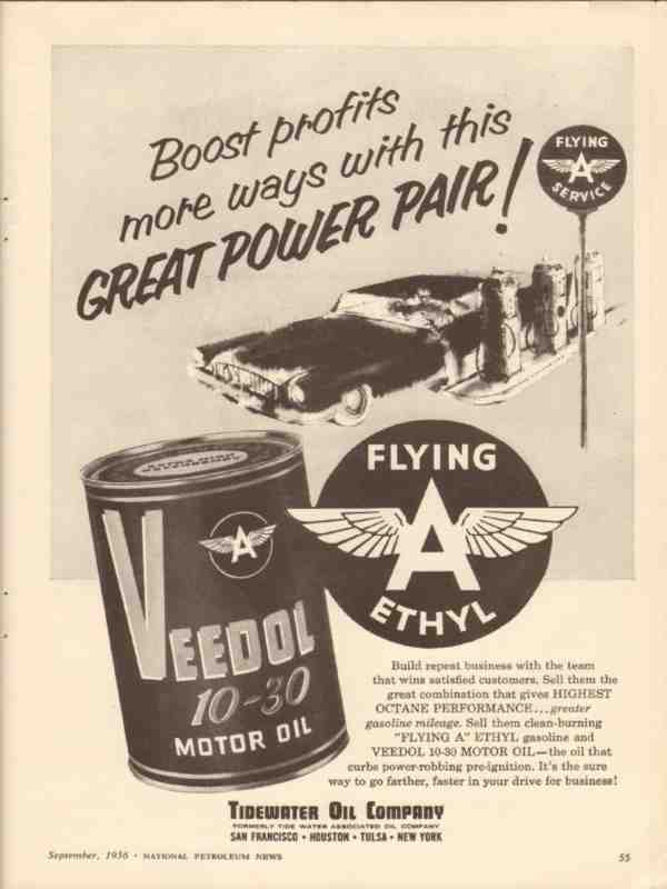 Tidewater Oil Company 1956 Vintage Ad Flying A Veedol Great Power Pair