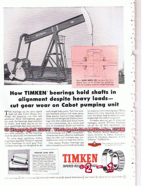 Timken Roller Bearing Company 1955 Vintage Ad Cabot Oil Pumping Well