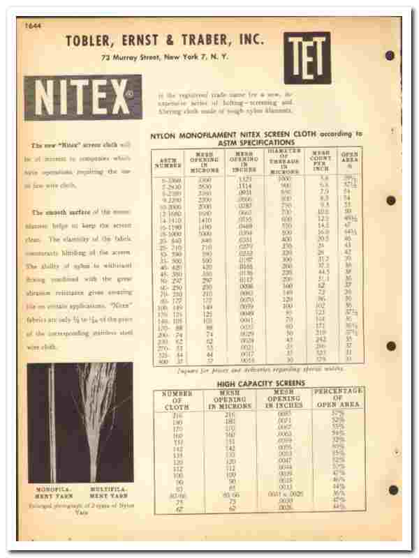 Products include Tet-Steel Wire Cloth, Nitex Screen Cloth and Swiss Silk Bolting Cloth, all are fully featured.