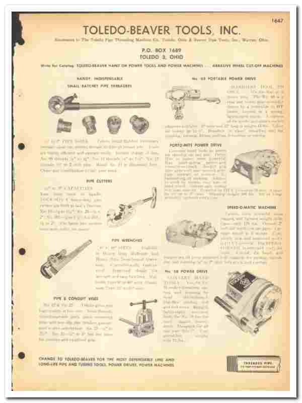 Original 1964 industrial trade vintage catalog for TOLEDO-BEAVER TOOLS, INC. Main office and plant were located in Toledo, OH. (Successors to The Toledo Pipe Threading Machine Company, of Toledo, OH and the Beaver Pipe Tools, Inc of Warren, OH.).